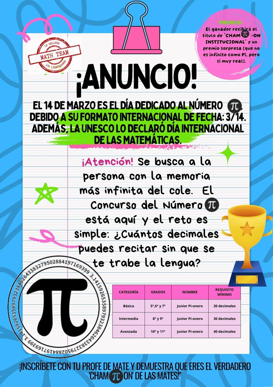 ¿Eres el/la Champion de las mates? Te estamos buscando. Busca a tu profe de matemáticas e inscríbete. No pierdas esta divertida oportunidad.