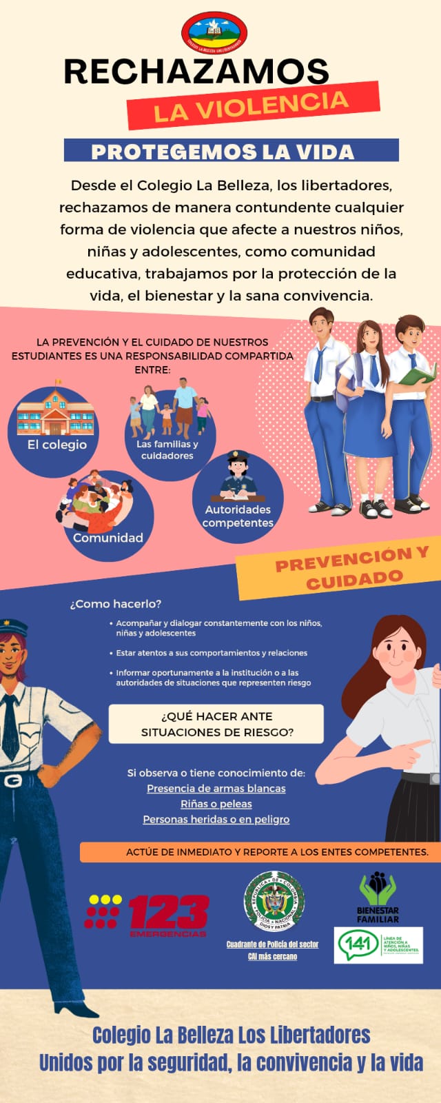 LDesde el Colegio La Belleza los Libertadores rechazamos de manera contundente cualquier forma de violencia que afecte a nuestros niños, niñas y adolescentes. Como comunidad educativa trabajamos por la protección de la vida, el bienestar y la sana convivencia.